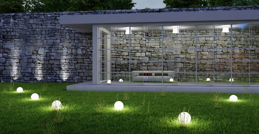 Важно продумать освещение. Все значимые объекты должны быть подсвечены: беседка, крыльцо, фонтан, пруд, дорожки, особенно главная.. Круглые светильники для улицыИсточник www.avito.ru
