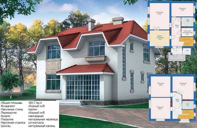 Планировка дома с мансардой, верандой, гаражом, цокольным этажом