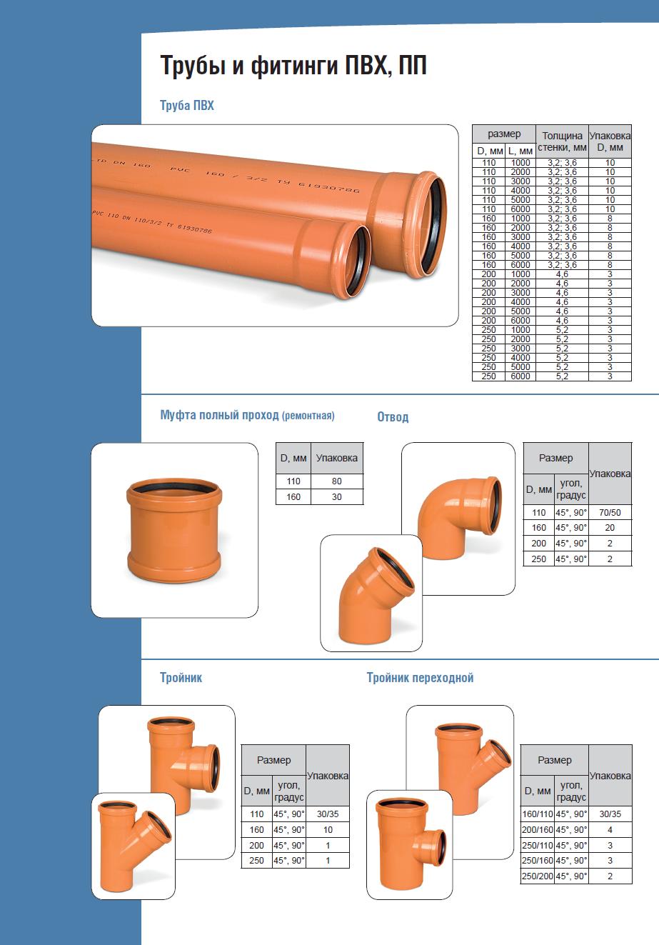 - муфты — диаметр 110-400 мм (ревизионная муфта до 315 мм), длина 12-33 см;