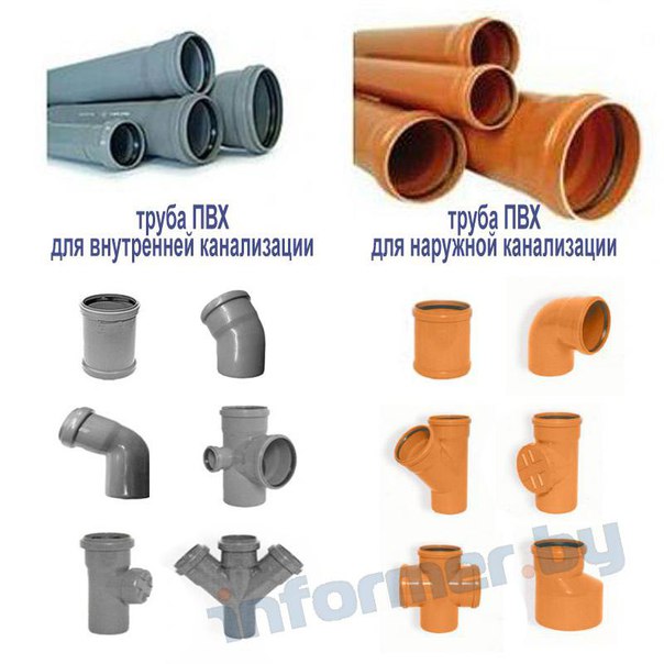 - непластифицированный поливинилхлорид, эти трубы используются при обустройстве любой канализации (внутренней, внешней, безнапорной, напорной);