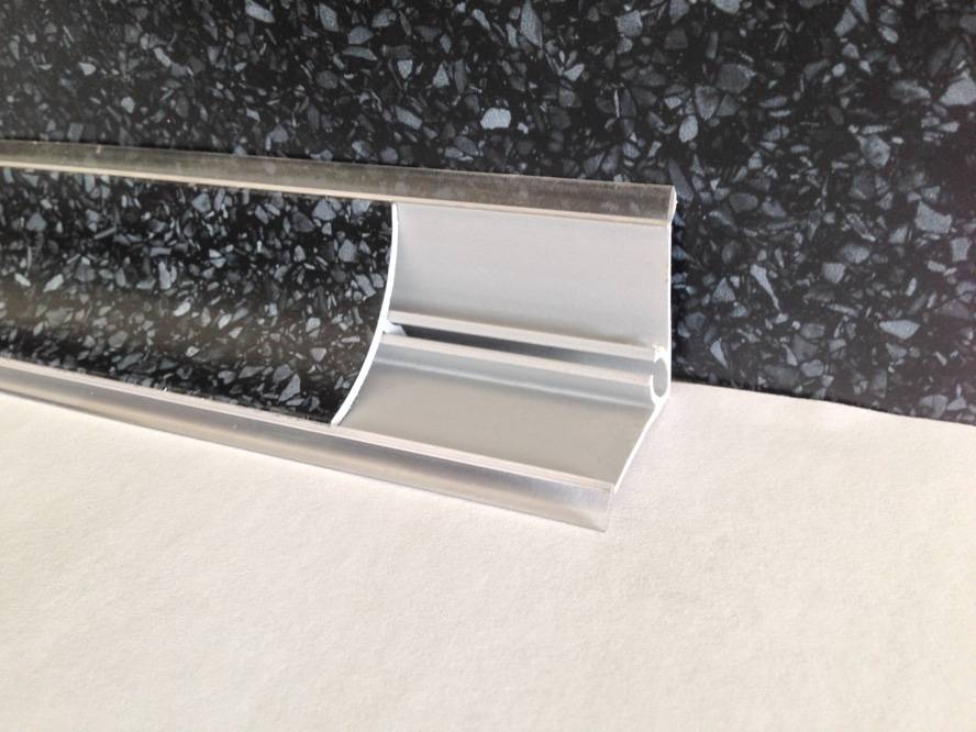 Верно подобранная плита выступает шире фасадов на 3-5 см и может быть оснащена сборником капель. Не желательно пренебрегать на кухне пластиковым плинтусом для столешницы. Он защищает крышку стола и стенку гарнитура. Возможно приобрести пластиковый плинтус для столешницы на кухню, оснащенный съемной планкой, которая легко заменяется. К доске любой расцветки подходит металлический плинтус.