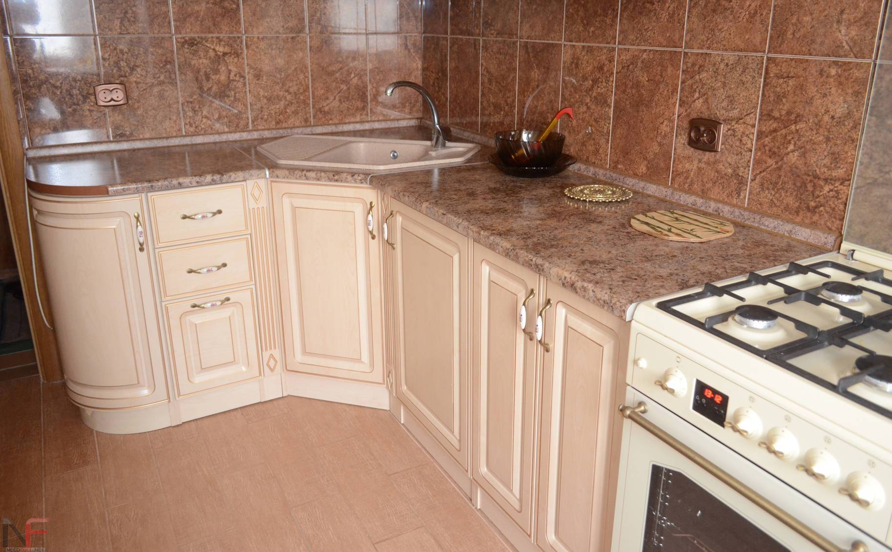 | Коричневый | Английский дизайн;- Классика;- Лофт. | – светлые тона;- кремовые, бежевые, белые кухонные гарнитуры. |