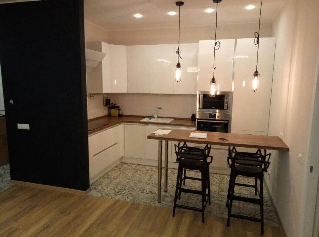 Взглянув на такую кухню, можно сразу понять, что рабочая поверхность изготовлена не из натурального дерева, а из напоминающего его материала. Поэтому данные изделия вряд ли выберут те, кто привык отдавать предпочтение роскоши.