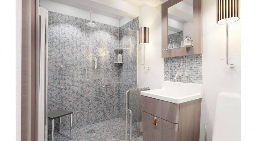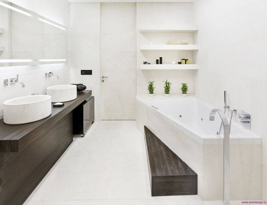 Поэтому важно не только рационально использовать свободную площадь в помещении и предусмотреть место для всех необходимых аксессуаров, но и сделать его визуально больше. В этом случае многое зависит от выбранного цвета.