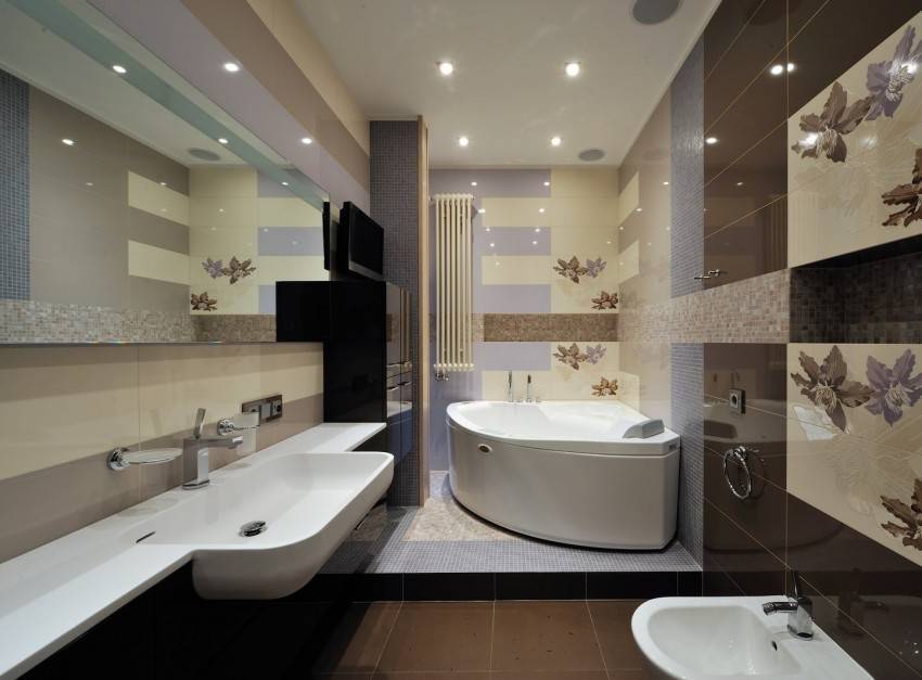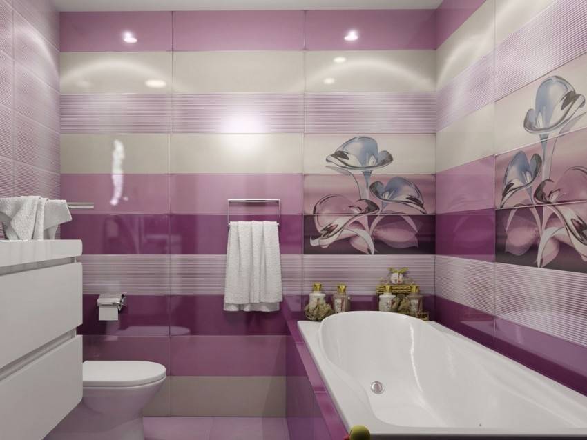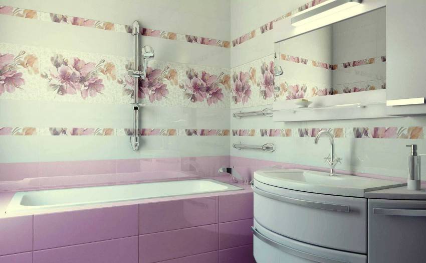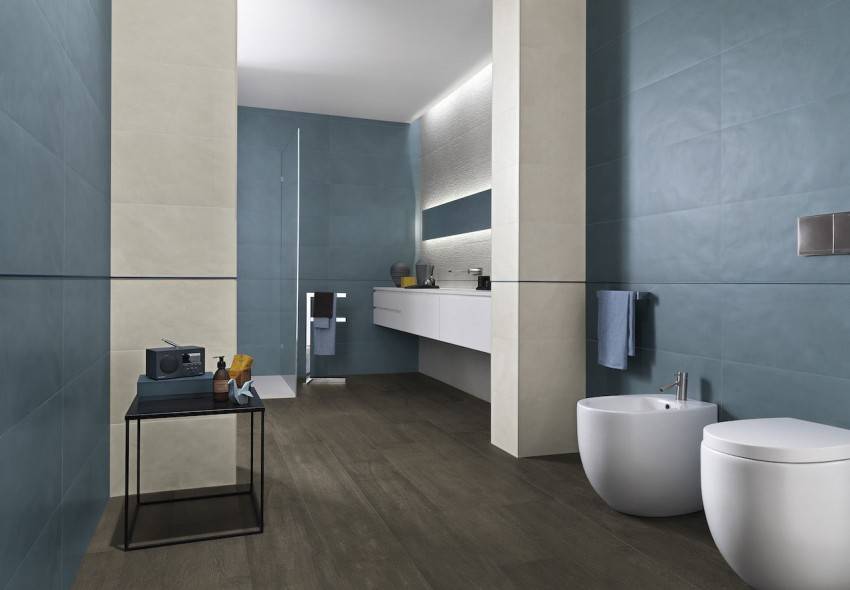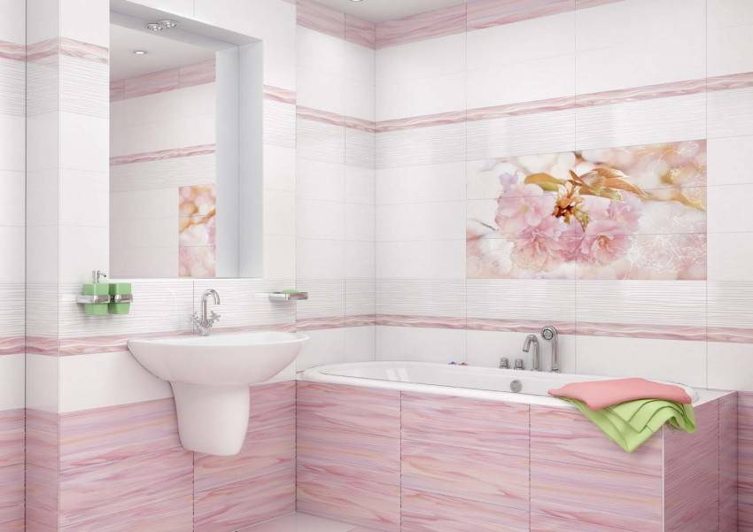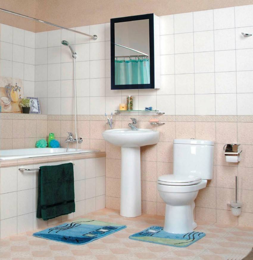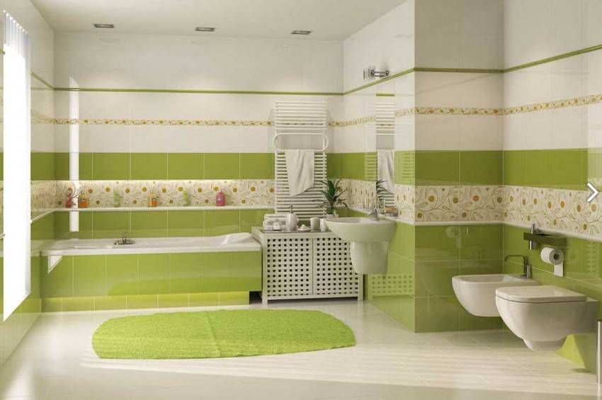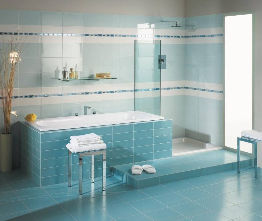 Плитка светлых тонов визуально увеличит ванную. Однако чисто белая керамика будет выглядеть монотонно и тускло, вызывая у многих людей ассоциации с больницей. Поэтому целесообразно выбрать для оформления другие цвета – голубой, лазурный, любые оттенки зеленого, кремовый и бежевый.