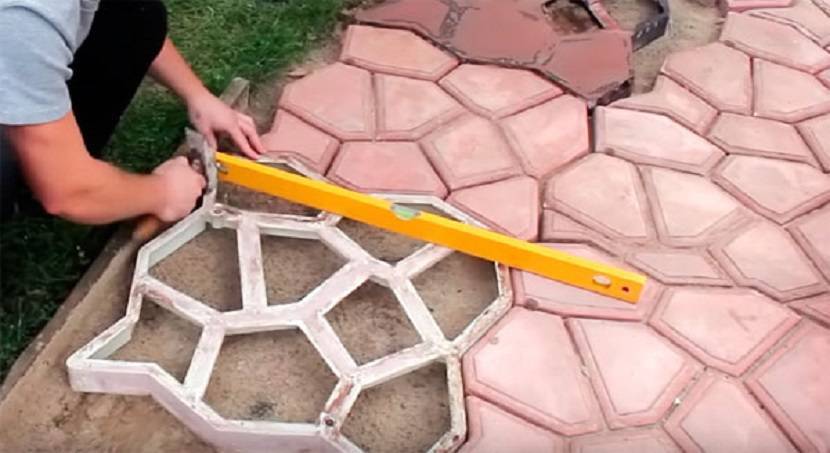 Сделать бетонную дорожку по такому принципу не составит особого труда. Для этого понадобится песок, вода, щебень, цемент, строительный уровень, мастерок и хотя бы одна форма. Из чего она будет сделана: из пластика, дерева, металла, гипса или иного материала – без разницы. Учитывайте – от количества форм зависит скорость выполнения работ.