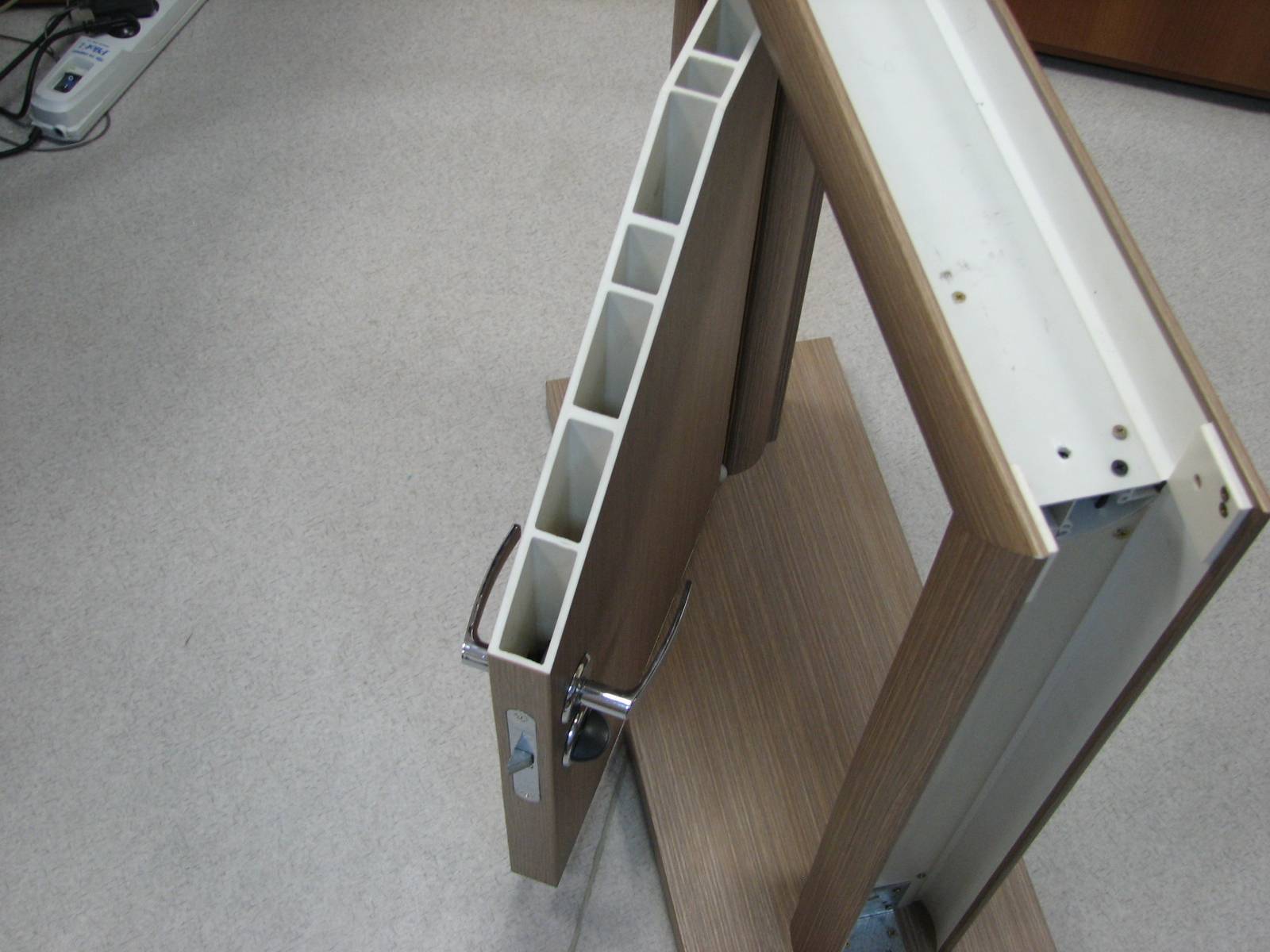 Внутренняя структура дверей Такую дверь несложно установить даже без посторонней помощи, потому что поднять ее может один человек, на петли не воздействует масса, что значительно увеличивает их срок службы. Это же касается и короба.
