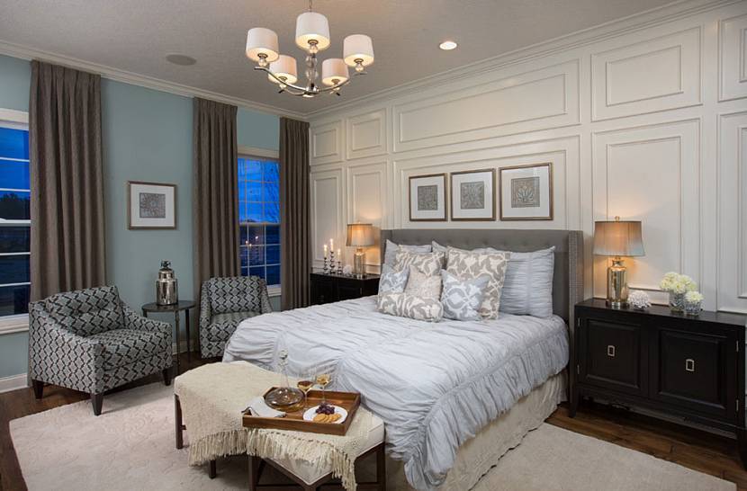Декоративные молдинги на стенах спальни на фотопримерах: