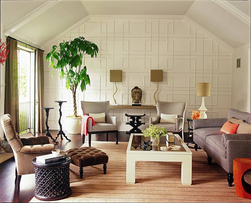 Молдинги, окрашенные в цвет стен гостинойИсточник www.houzz.com