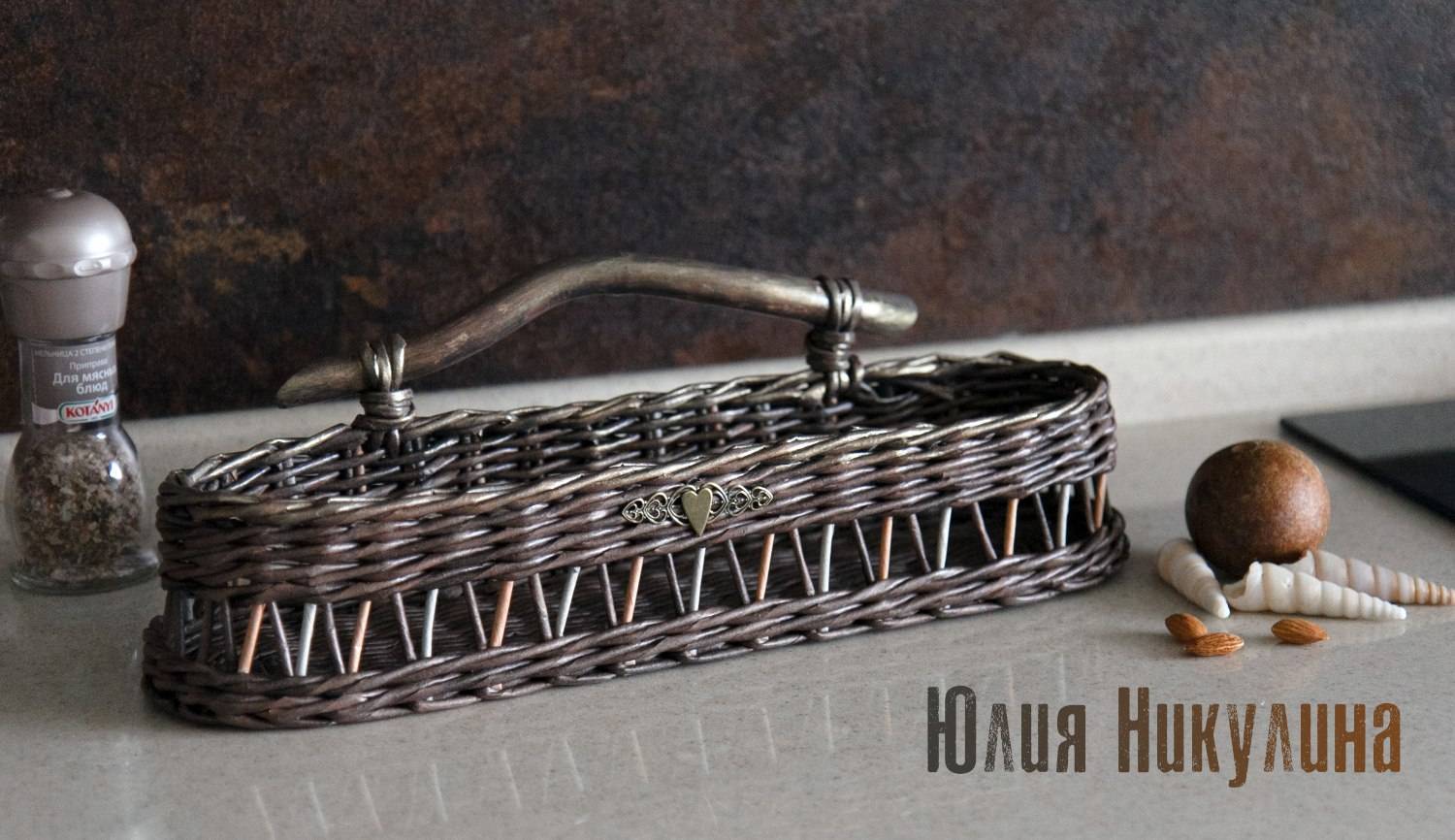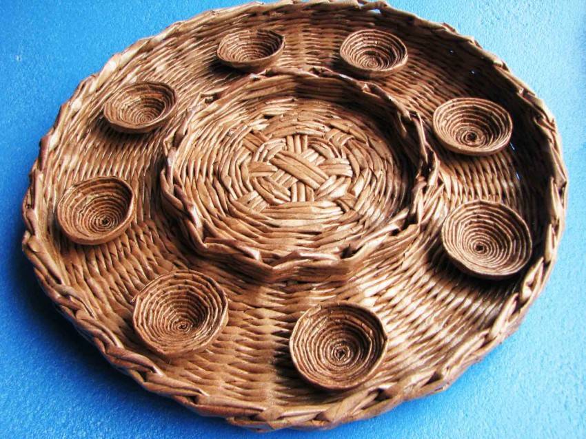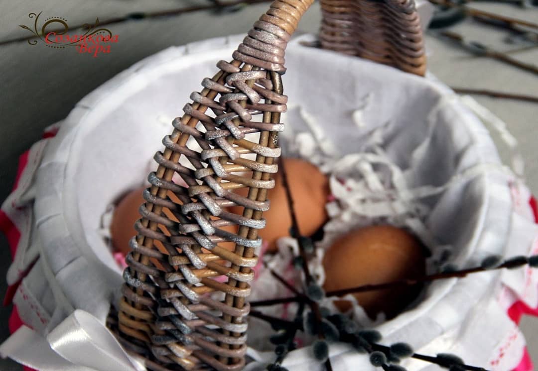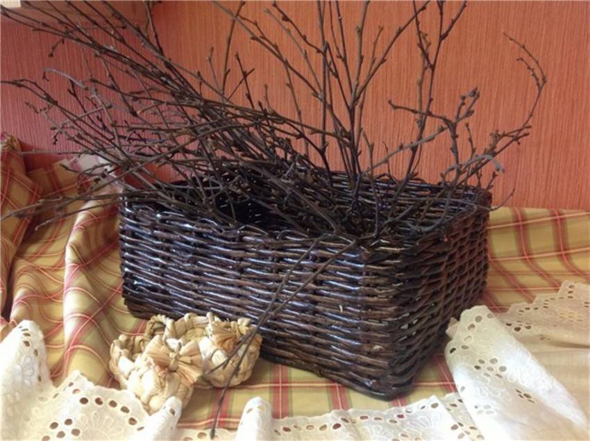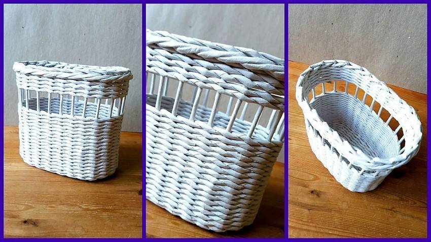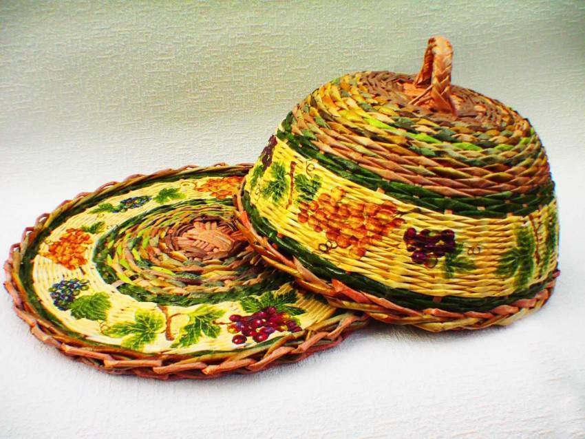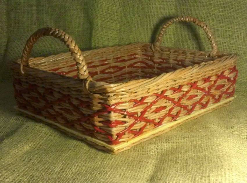 В начале своего творческого пути, обязательно сплетите такую корзинку для фруктов или конфет. Как видите, она получается очень симпатичной, а значит, вы не только сможете потренироваться вязать бумажную лозу, но и изготовите отличный подарок на все случаи жизни.