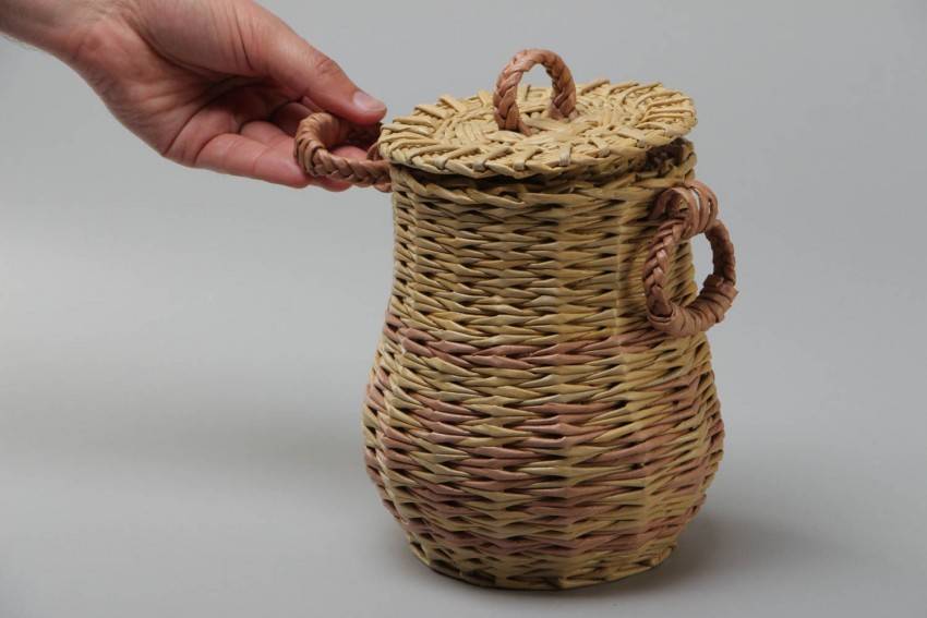 Это самый неподходящий материал ввиду довольно большой плотности (офисная бумага формата А4/А3 имеет плотность 80 г/м2). Трубочки из нее получаются слишком плотными и неподатливыми. Используя офисную бумагу любого формата, вы столкнетесь с трудностями уже на этапе заготовки: скрутить ее в трубочку займет гораздо больше времени, чем при использовании других видов сырья. И самое существенное: готовая лоза получится слишком жесткой, ее будет сложно уложить в плетение, а в готовом изделии будут заметны скрутки и заломы.