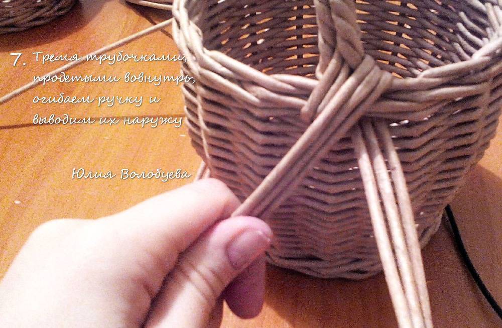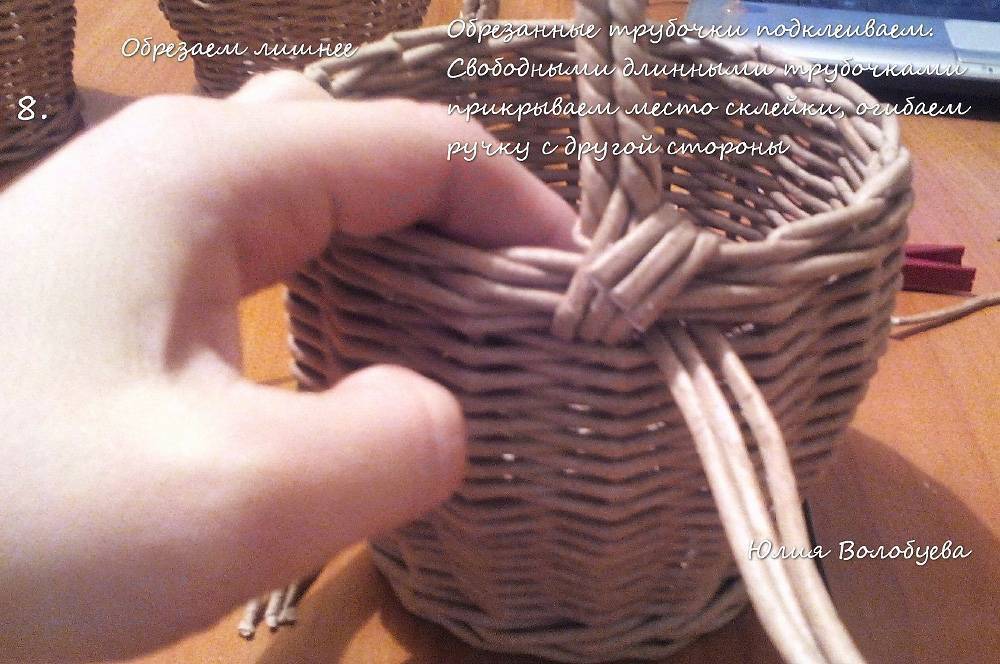 Если так работать вам неудобно, переверните плетение. Доплетите корзинку до нужной высоты и обрежьте рабочие трубочки.