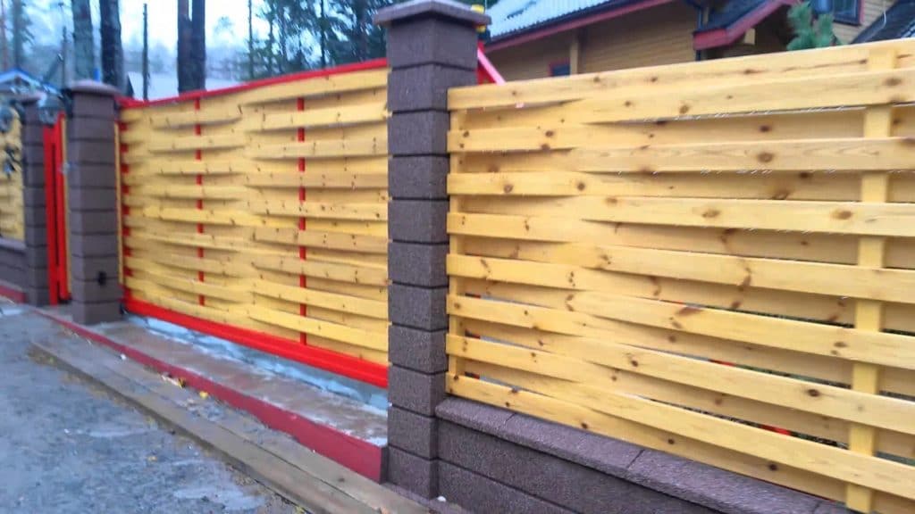 Для строительства плетенки нужны струганные доски и столбы из деревянного бруса, металлических труб, бетона или кирпича. Прочность готового изделия будет зависеть от силы натяжения вплетенной древесины. Что касается основного материала, оптимальными заготовками будут полотна размером 150 х 20 мм при длине 2100 мм.