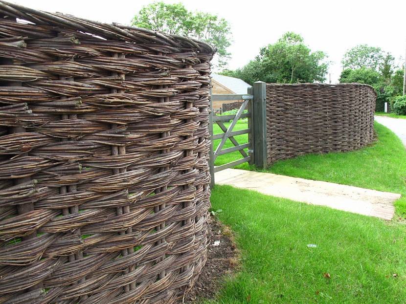 Довольно гибкими и одновременно прочными являются молодые побеги орешника, которые нужно срезать до появления почек. Но чаще всего подобную изгородь плетут из ивовых прутьев: по гибкости им нет равных и растет ива практически везде и в большом количестве.