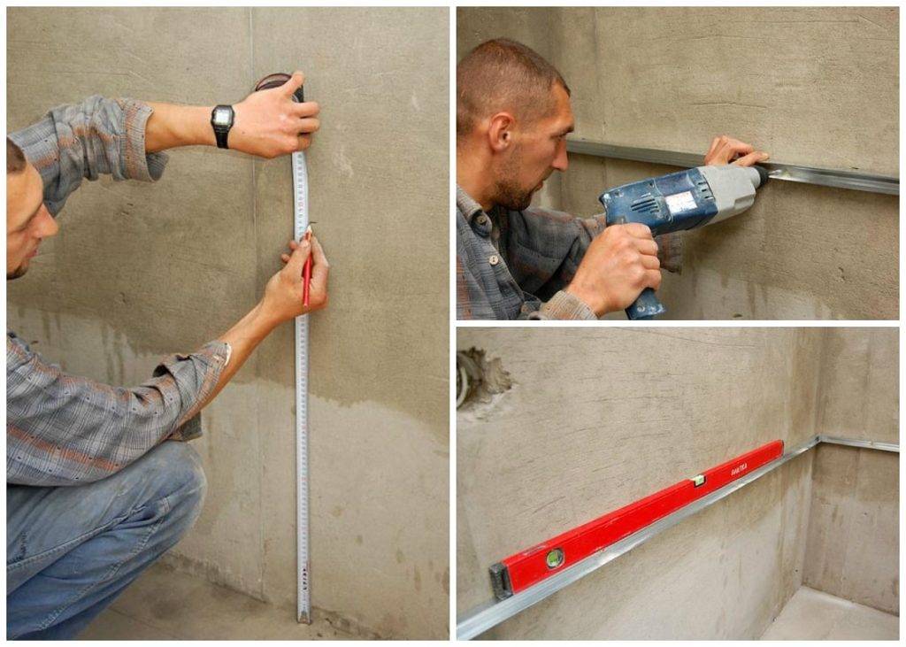 Для этого нужно измерить площадь под кладку, обратить внимание на углы помещения, чтобы предусмотреть про запас отделочный кафель. Чтобы замеры были точными, рулетку прикладывают в строгом направлении