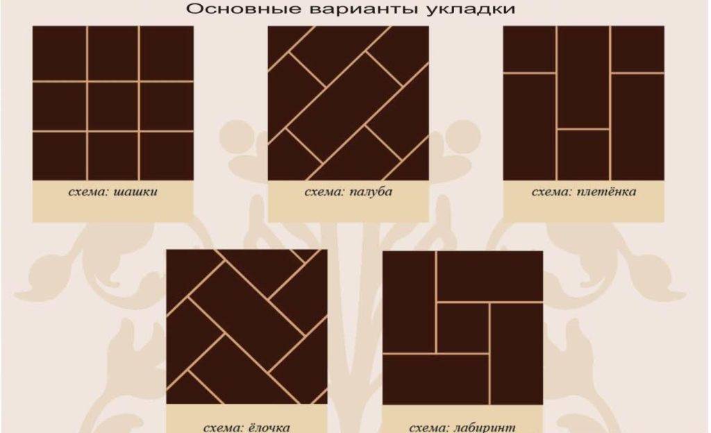 Шов в разбежку со смещением материала по горизонтали или вертикали позволяет создать оптическую иллюзию. Паркетный способ применяется для кафеля прямоугольной формы. При этом методе укладки увеличивается расход материала на 10%.