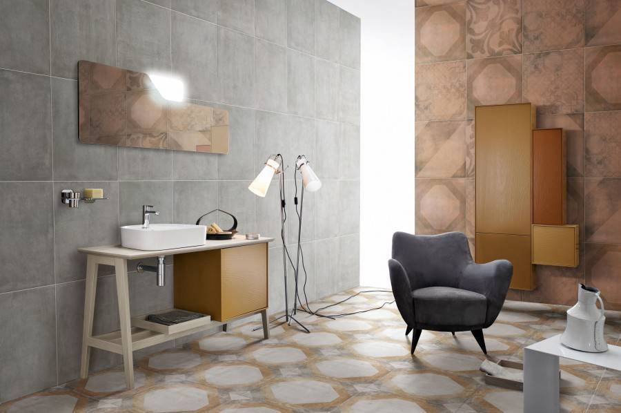 - Чтобы был единый стиль, следует выбирать напольную и настенную плитку из одной коллекции.