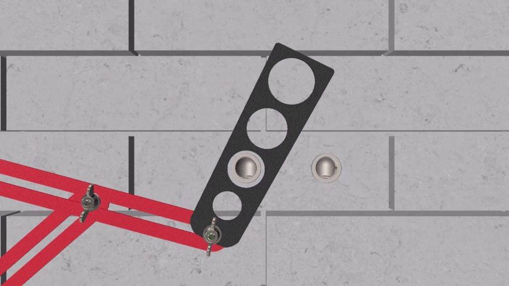 Для облицовки стены над дверью, над нею прибивают направляющую планку и продолжают клеить плитку вверх. На следующий день планку снимают и начинают клеить сверху вниз. Плитки Peronda Museum Torano при этом закрепляют скотчем. Под розетку вырез делается в трех плитках. Если посредине, то сверлится коронкой.