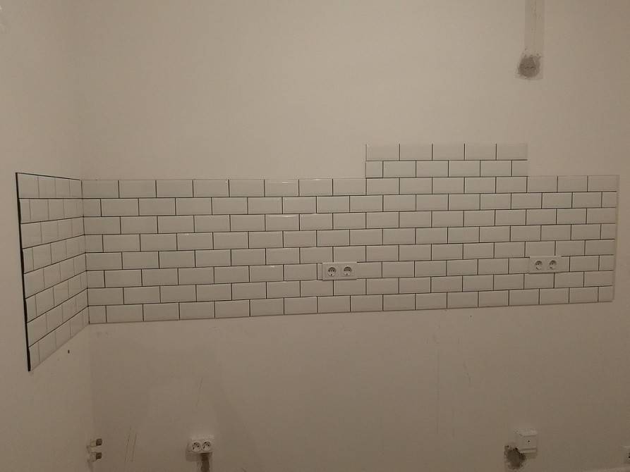Простая облицовка. Она представляет собой простое укладывание плитки параллельно стенам. Это самый простой способ укладки, с которым должен справиться любой. Вариант отлично подойдет для простого обновления стенки вашей кухни.
