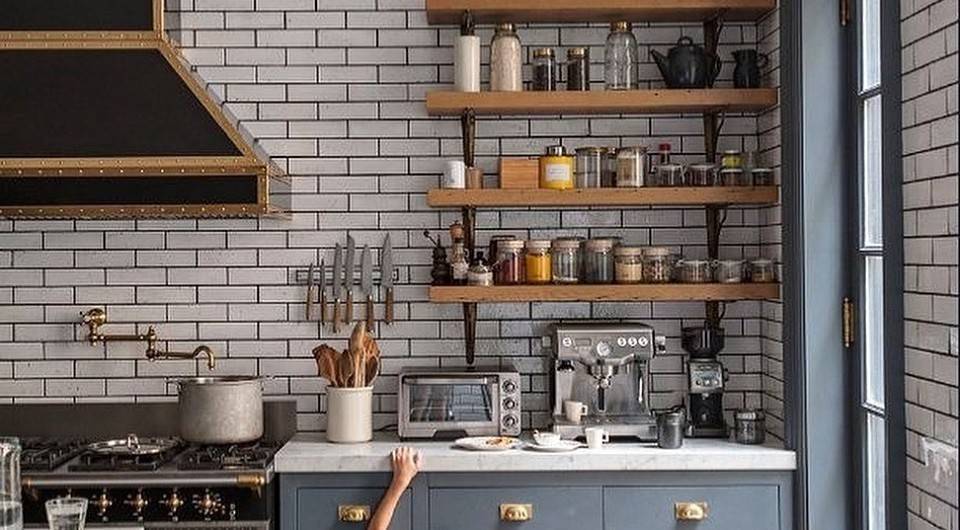 Чем ярче фартук, тем сдержаннее мебель
