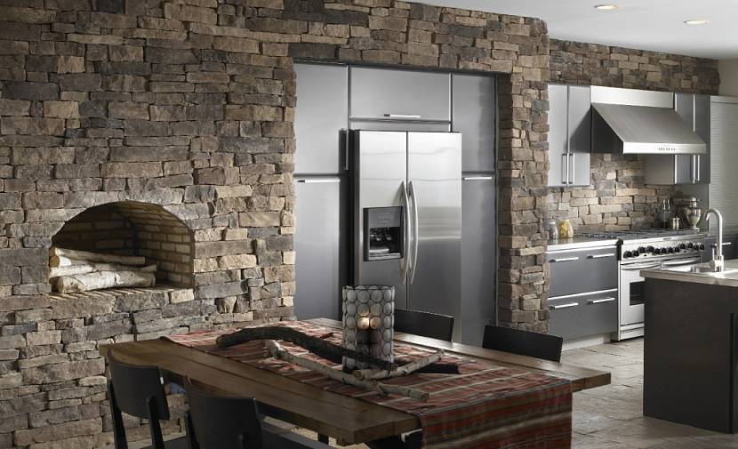 Интерьер кухни с отделкой из искусственного декоративного камняИсточник ultimatebadbackstrategies.com