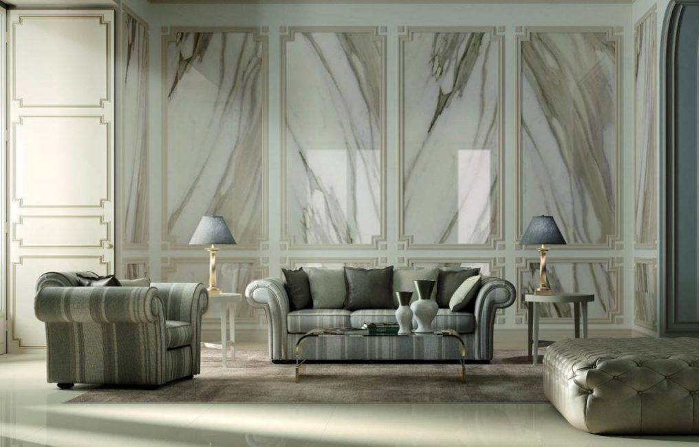 И такой вариант отделки отлично подходит для просторной гостиной.