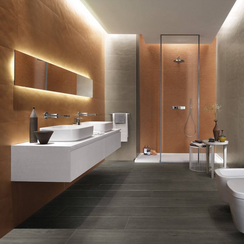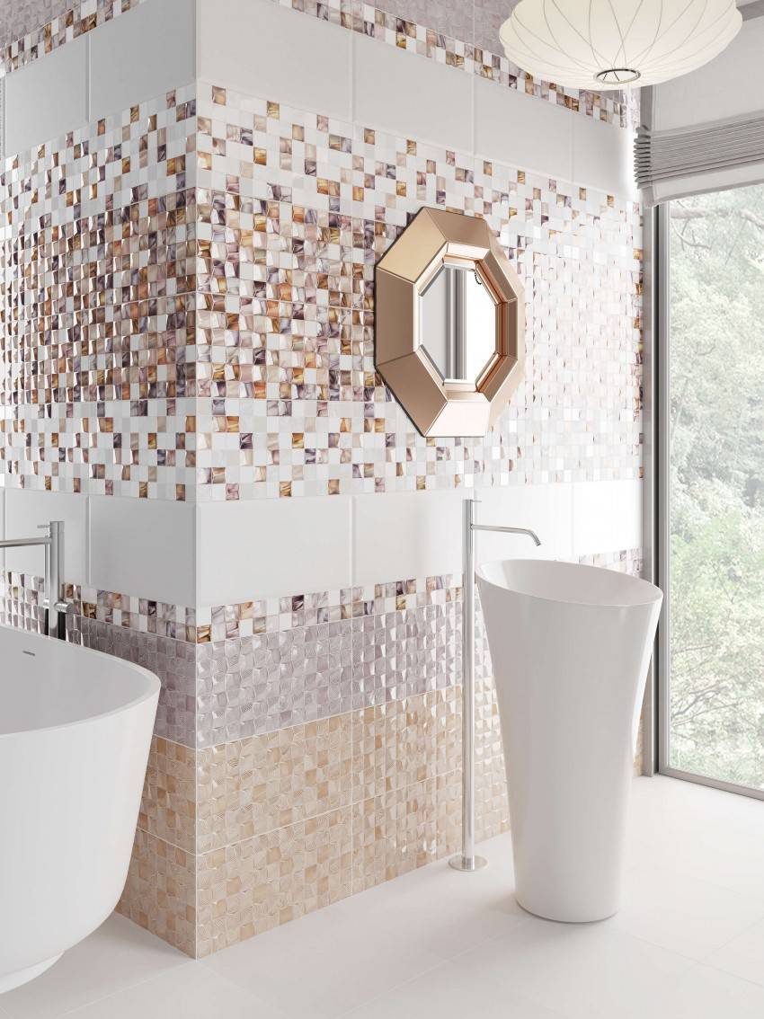 Большой выбор разных видов кафеля позволяет оформить ванную комнату в любом стиле или же скомбинировать несколько по желанию. Современный дизайн можно создать при помощи фотопечати, различных технологий глазирования и обжига и т. п.