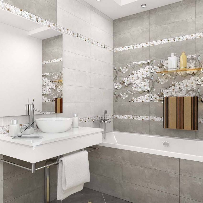 Размещение плиток с панно. Однотонный кафель в ванной без декора уже устарел