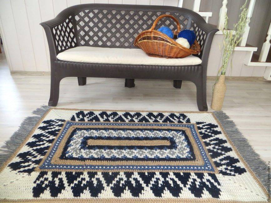 - Контраст. Цвет ковра должен значительно отличаться от оформления комнаты. Черное на светлом, белое на темном, яркое на белом и т.п.