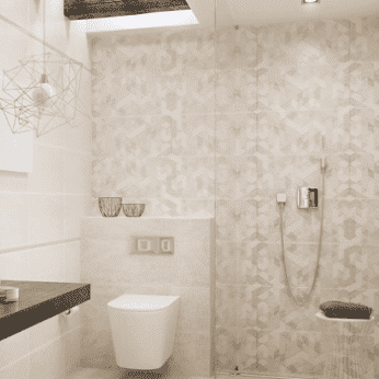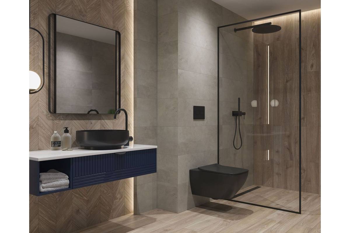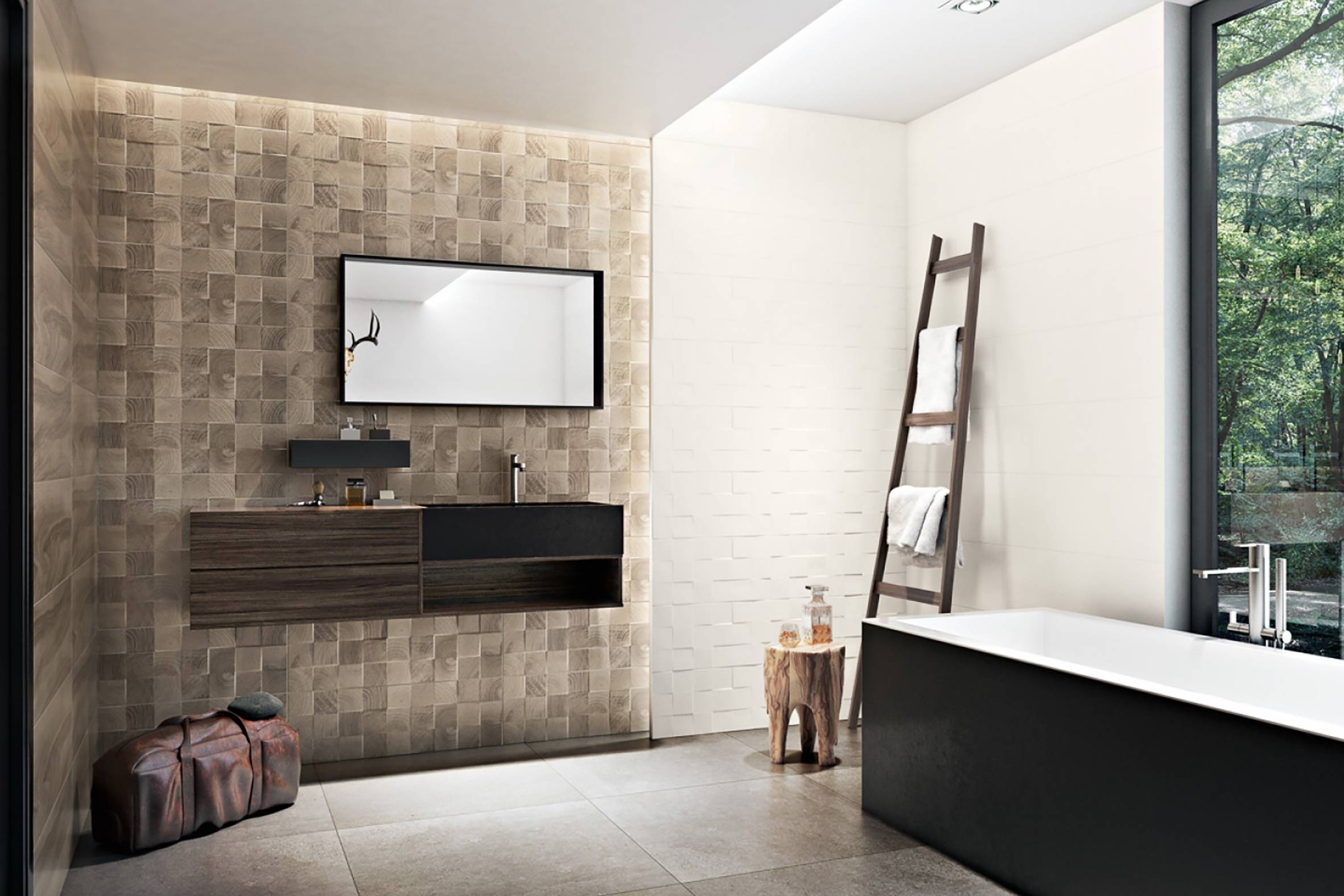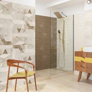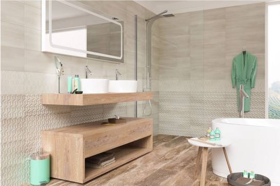 - Для создания оригинального интерьера в ванной комнате прекрасно подойдёт плитка из серии Bambus в сочетании со своей же мозаикой.