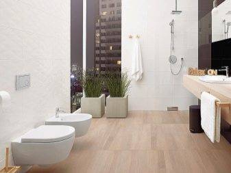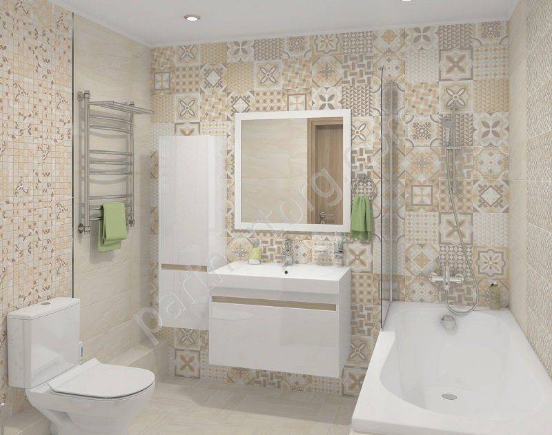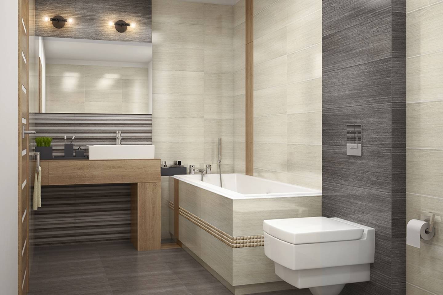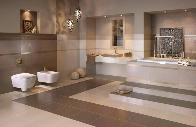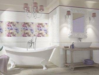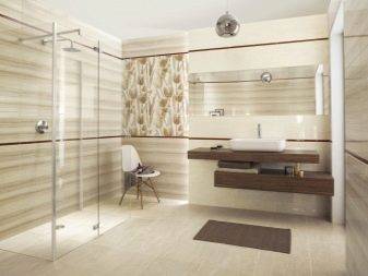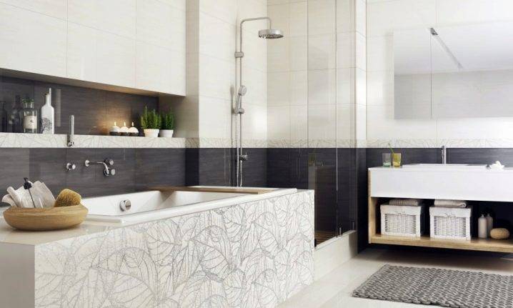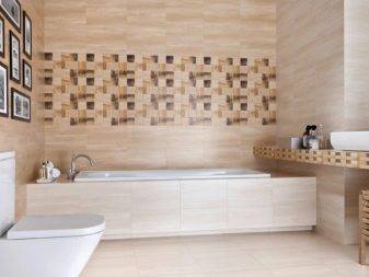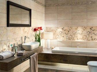 Керамическая плитка вполне подходит не только в ванну, но и для совмещенного санузла. Дизайн ванны, совмещенной с туалетом при таком многообразии фактур и расцветок керамической плитки сделать легче.