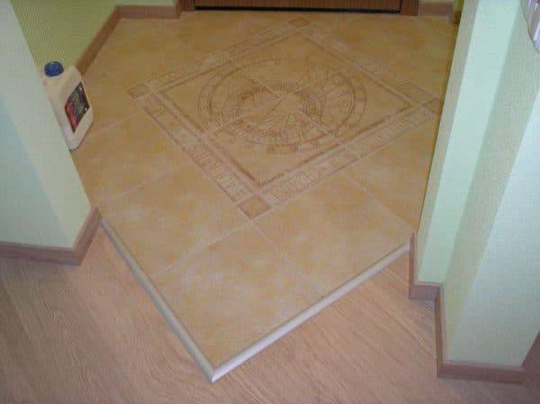 - кладка начинается снизу вверх с использованием рейки для самого нижнего ряда (на полу плитка кладется от дальнего угла по направлению к двери);