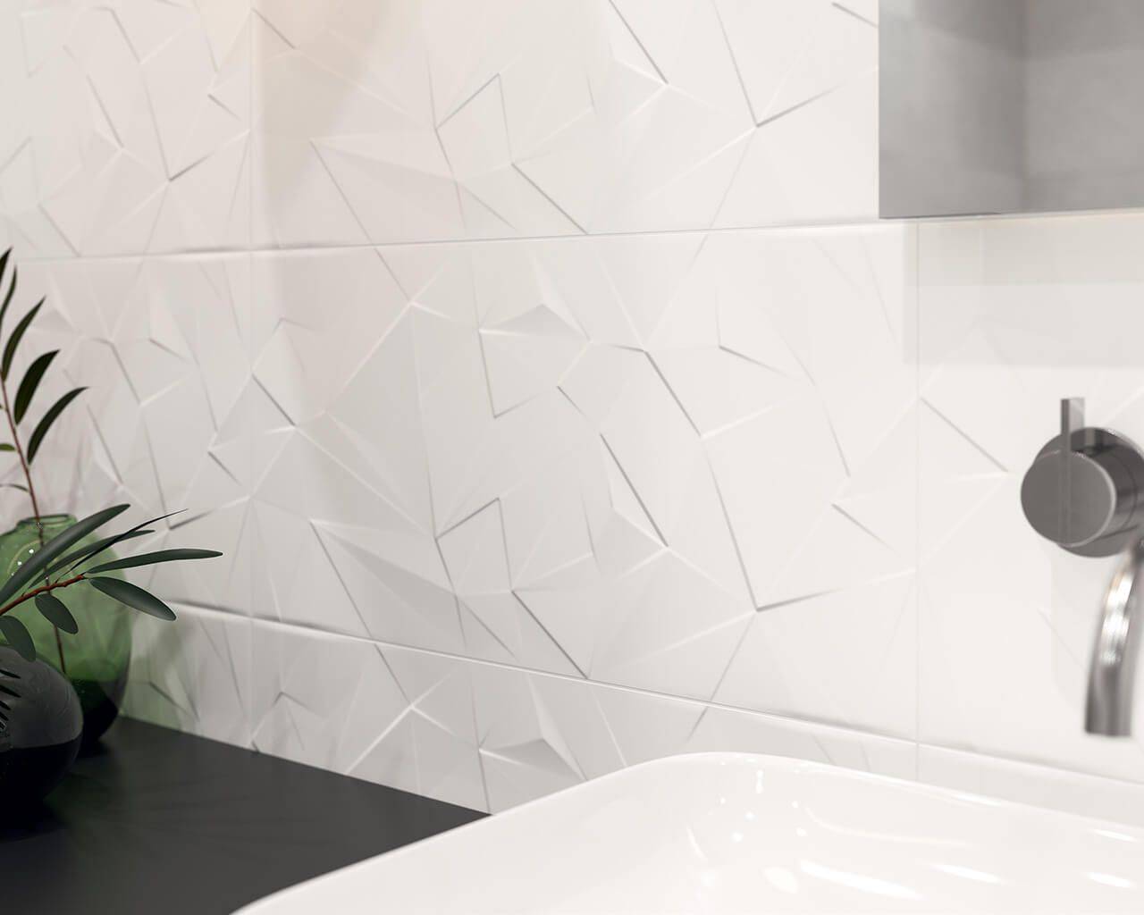 Зеркальная плитка, да еще золотого и серебряного цвета, – это редкость, а если в каждом элементе присутствует одновременно матовый и глянцевый сегмент, это предполагает устройство весьма незаурядного интерьера. И это только часть коллекции Logic. Остальные плитки можно было бы считать традиционными из-за их белого, черного или бежевого цвета, если бы не та же причудливая игра матовых и глянцевых участков. Они разделены между собой линией, пересекающей квадрат под углом. Наиболее интересные композиции получаются, если плитки укладывать с различной ориентацией. Интерьер становится просто фантастическим!