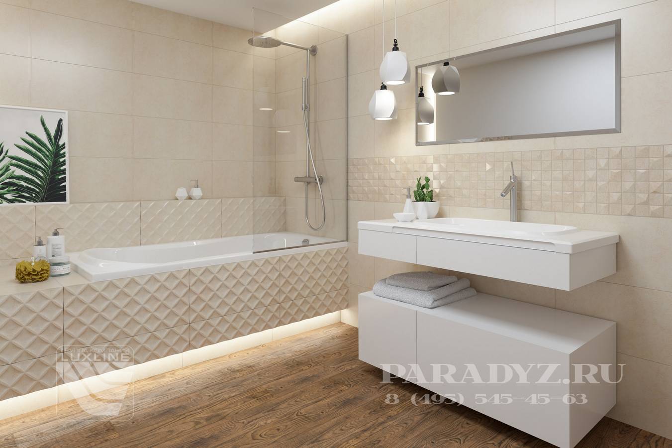 В ассортимент керамических плиток Paradyz входят настенные, напольные элементы, кафель для бордюра и разноцветные декоративные участки: