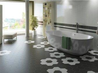 При желании пол в ванной комнате можно покрыть керамогранитом. Он: