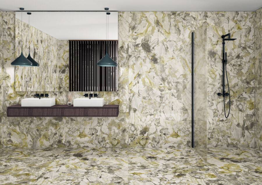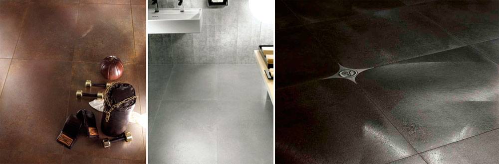 В некоторых коллекциях на одной плитке комбинируются участки с глянцевой и матовой поверхностью, создающие эффект полированной стали, меди или алюминия. Такая плитка оптимальна для мест с низкой абразивной нагрузкой — стены и пол ванной, спальни, гостиной.
