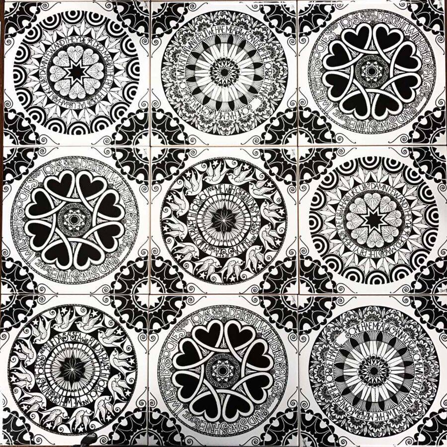 Укладка плиточных модулей пэчворк не требует соблюдения особых правил сочетания изображений на покрытии. Однако более эффектно будет смотреться хорошо продуманная композиция из плиток.