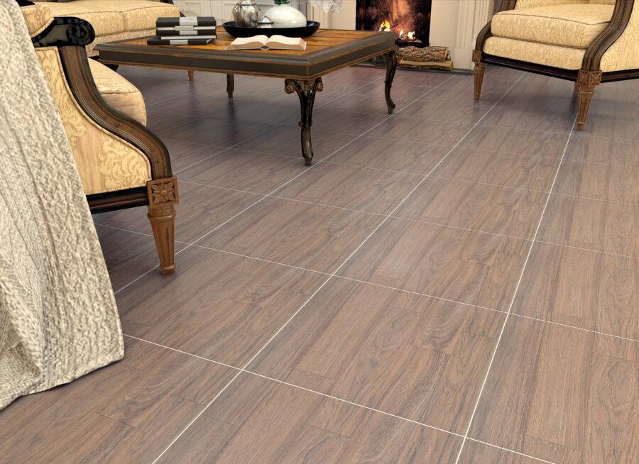 Керамика с принтом под дерево пришла на замену паркету и ламинату. В этом году дизайнеры предлагают отказаться от паркета в пользу кафеля даже в гостиной.
