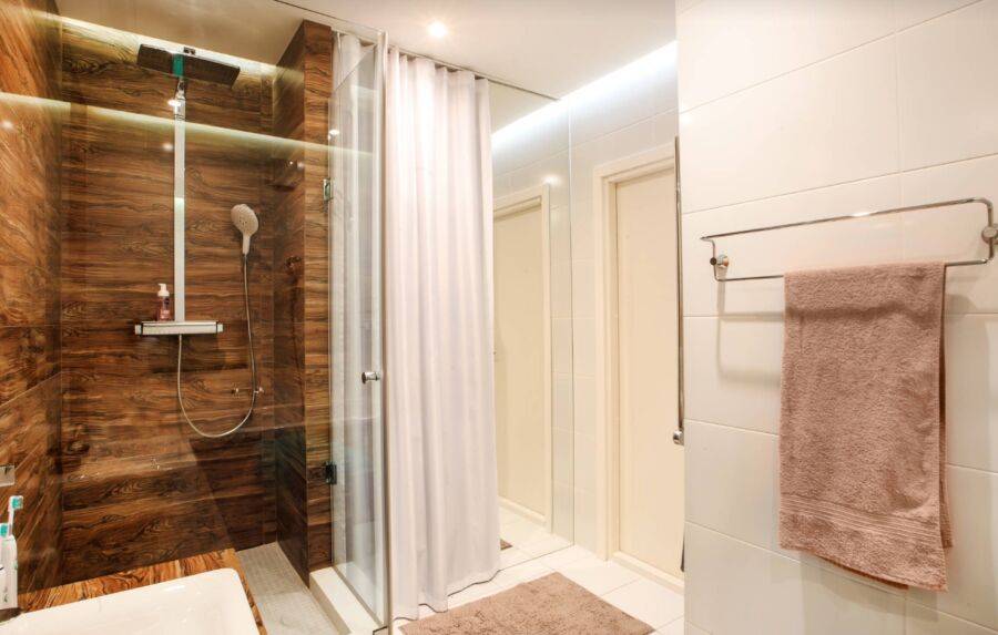 Его сочетают с однотонной разновидностью, чтобы не перегрузить интерьер. Интересно смотрится дизайн душевой из плитки с 3D эффектом.