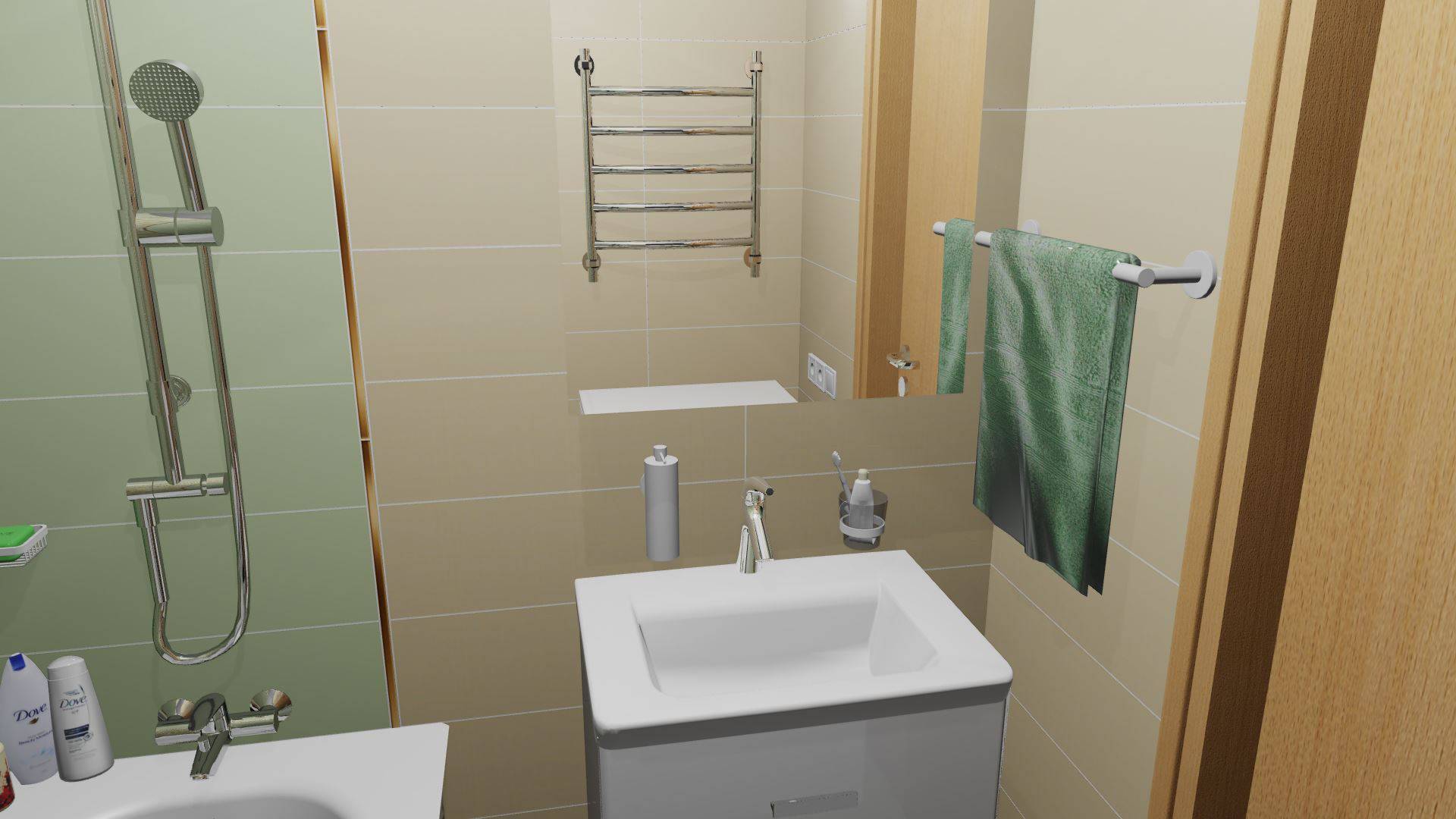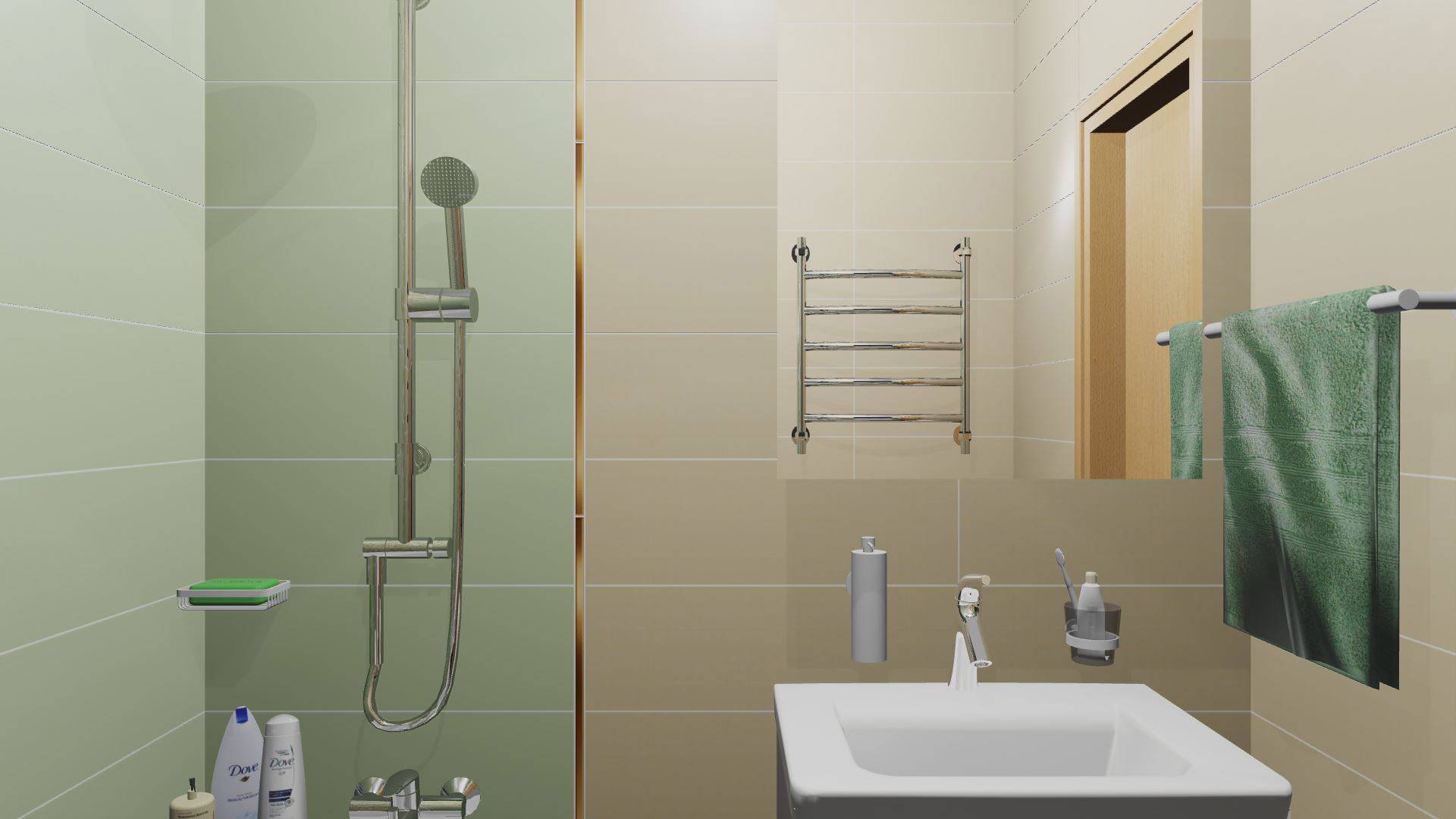 Для нейтральной гаммы необходимо создание цветовых акцентов (бирюзовый, насыщенный розовый), организация дополнительной подсветки в функциональных зонах над раковиной, в душевой.