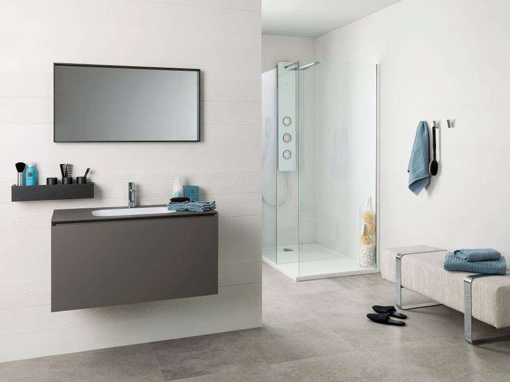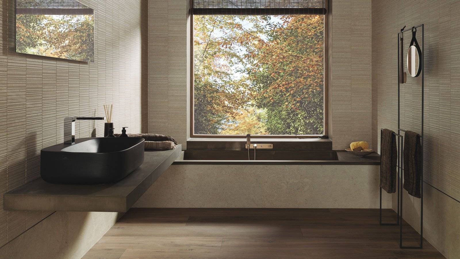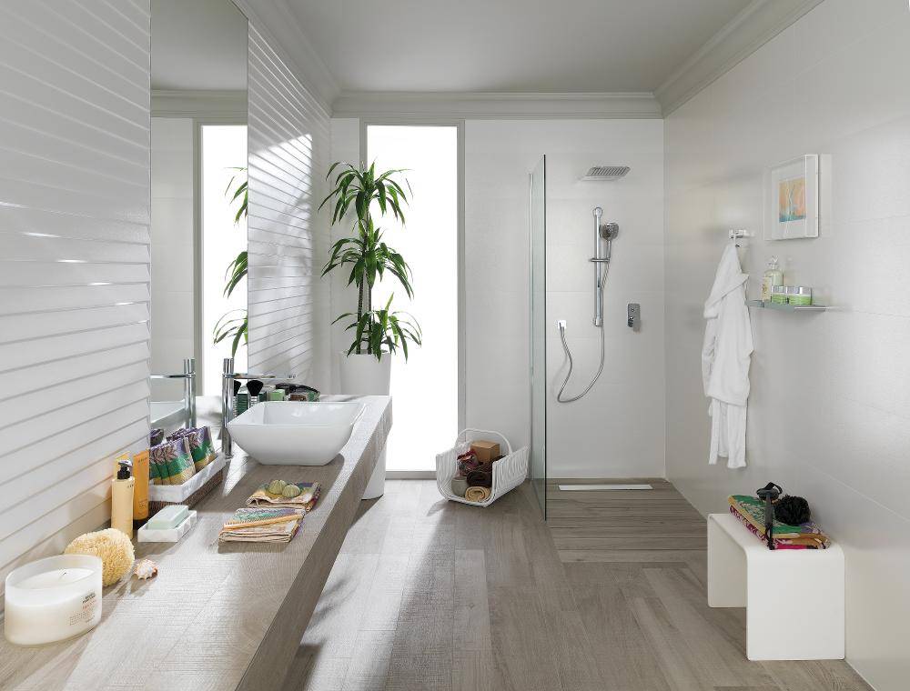Этого же результата можно добиться с помощью коллекции Ewood Wenge Nature от XTONE (Urbatek), воссоздающей рисунок и сдержанные контрасты черного дерева. Этой же линии придерживается Finish Studio от Noken. Это решение позволило максимально персонализировать душевые поддоны серии Slate, используя имитирующую дерево отделку керамики от Porcelanosa или Venis, созданную с помощью цифровой печати (светодиодные УФ-отверждаемые чернила новейшей технологии).