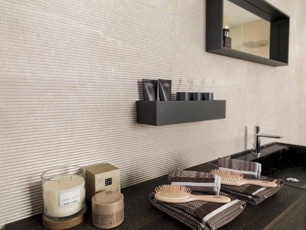 Это же можно сказать о Fitwall от Krion. Эта крупноформатная минеральная декоративная панель предназначена для быстрого оформления пространств без необходимости специальных работы. Благодаря легкой установке, а также весьма реалистичной и рельефной отделке, с помощью этих изделий можно создавать пространства с собственной индивидуальностью, используя текстуры и объемы, вдохновленные деревом, бетоном, обожженной глиной или тканями.