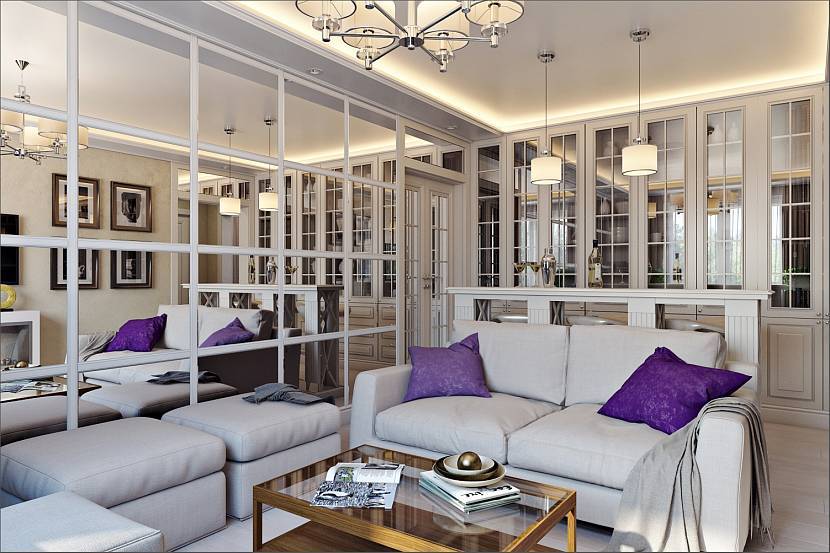 Довольно строгий стиль с четкими геометрическими линиями, при этом дополненный предметами роскоши. Потолок с зеркальной или матовой поверхностью станет отличным дополнением к изысканному стилю.