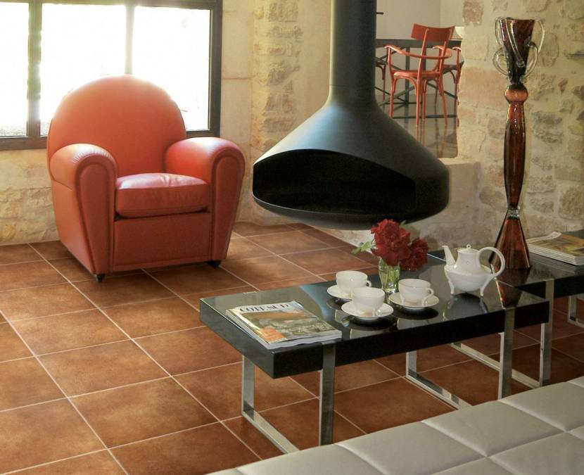 | Котто | Не покрыта эмалью, производится на глинистой основе методом экструзии, имеет толщину до 3 см. | Невысокая стоимость | Не очень подходит для монтажа в гостиной, так как ее пористая структура накапливает грязь, нуждается в постоянном уходе. |