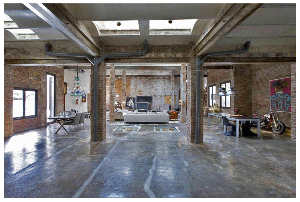 Художники, архитекторы и другие владельцы таких «апартаментов» не обращали внимания на интерьер. Им просто нужно было место для работы, проведения выставок и эвентов. Поэтому при обустройстве они часто оставляли стены, пол, а также потолки без отделки.