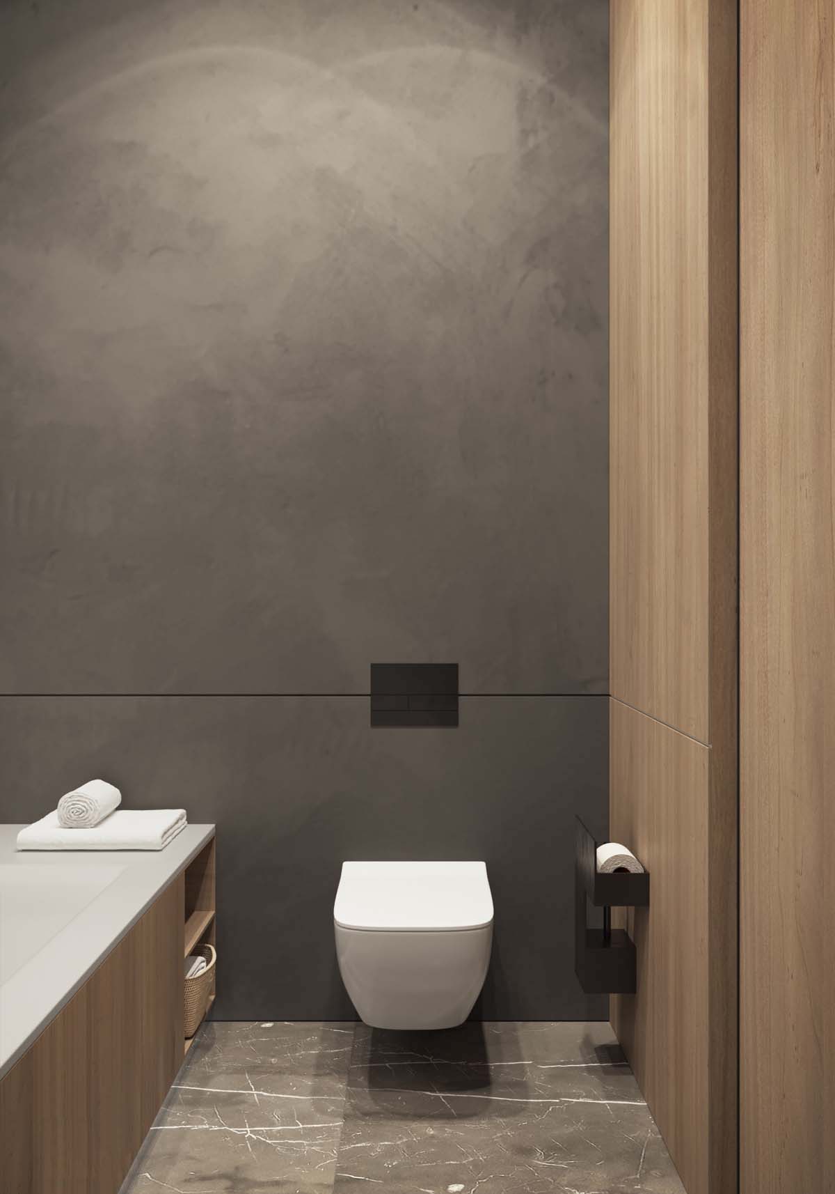 Сегодня модны сдержанные и нейтральные цветовые гаммы в сероватых и (особенно) чёрных матовых тонах. Для придания помещению более живого вида, вполне можно выбрать, например, текстурированную кафельную плитку.