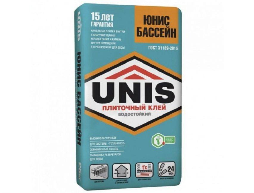 Это специальный клей для монтажа плитки в ванных комнатах и на ступенях. В его составе содержится гидрофобный модификатор, позволяющий облицовывать даже фонтаны и бассейны.