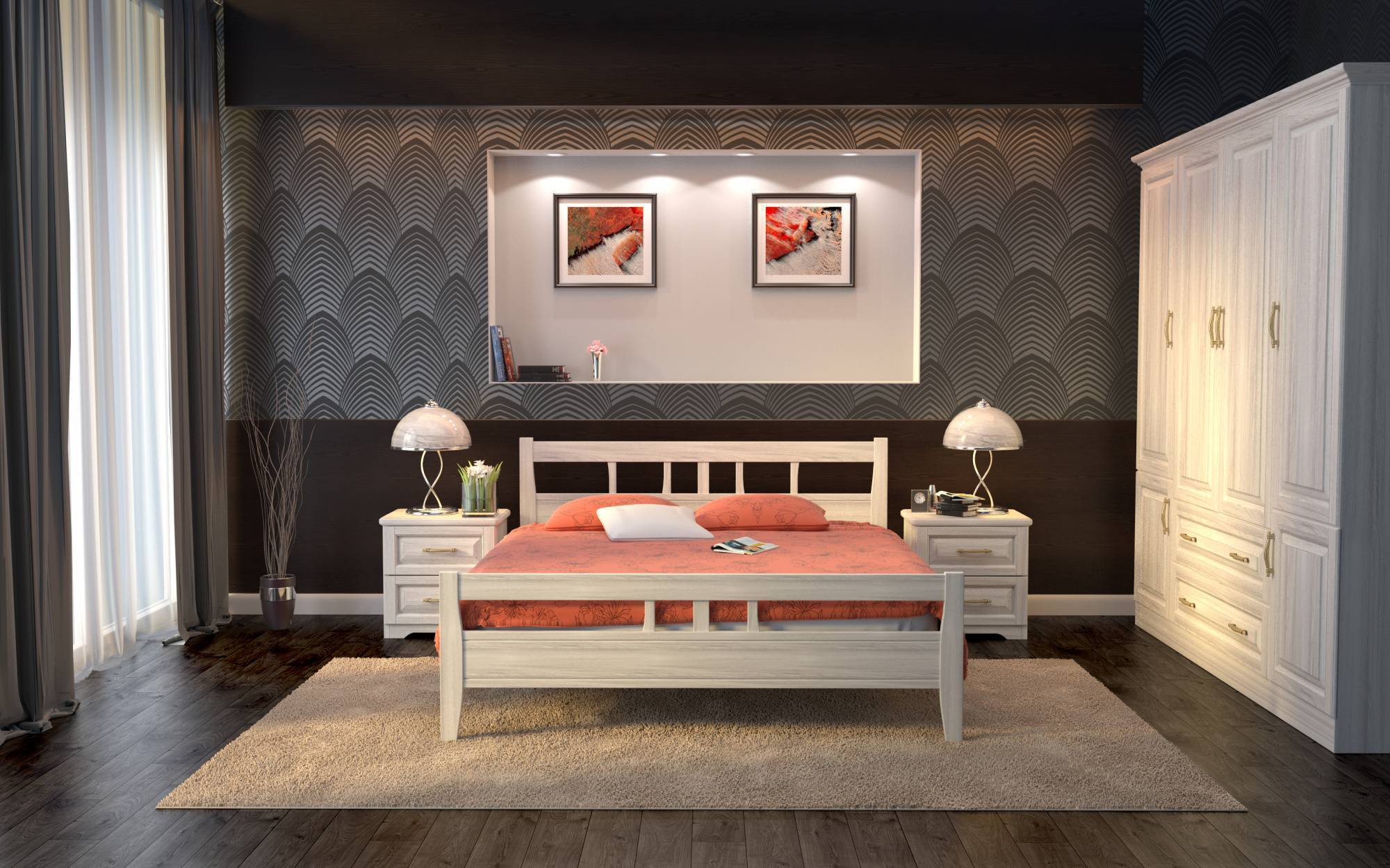- Сосна. Золотистая древесина. Кровати, тумбы и шкафы в таком цвете используют чаще всего.