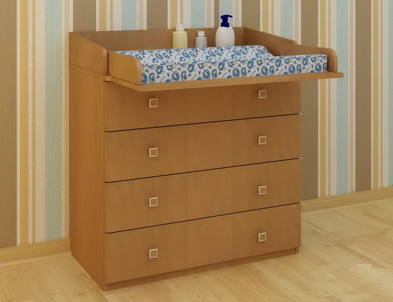 Ассортимент для детской комнаты включает пеленальные столики для новорожденных, двухъярусные или одноярусные кровати для малышей и подростков, комоды, книжные шкафы, тумбы