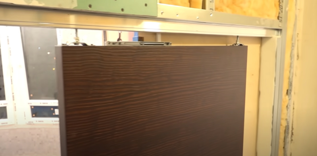 Если зазоры в доме оказались слишком большими и планки не прилегают, то их обрабатывают шлифовальной машинкой. Когда фальш-стена станет ровной – можно устанавливать створки и крепления.